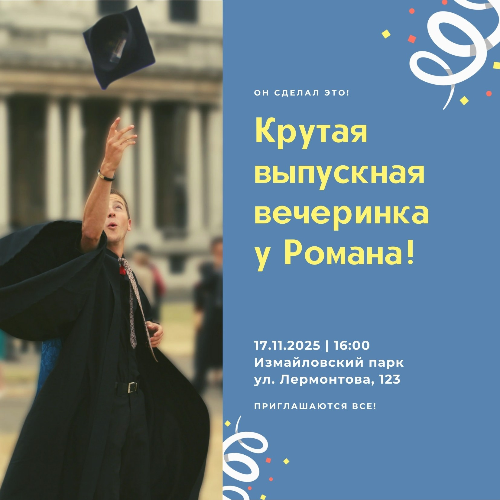 Пригласительная открытка — это первое впечатление от события. В этой серии мы показываем, как можно по-разному рассказывать о важном дне: романтичная свадьба за городом, юбилей университета, драйвовая выпускная вечеринка, трогательное крещение и праздник в честь рождения малыша.